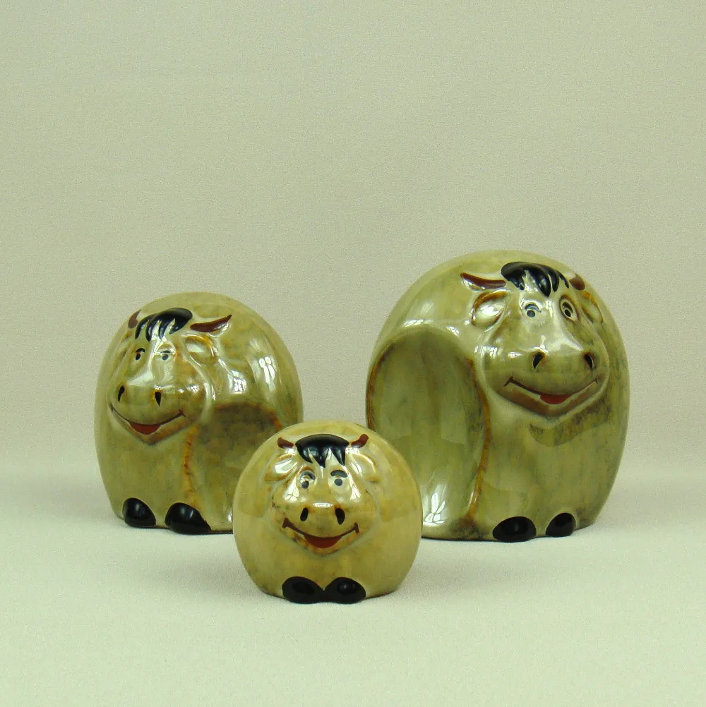 Best Fashion Porcelain Ox Family Miniature Decorative Abstract Ceramics Buffalo Figurine Ornament Craft