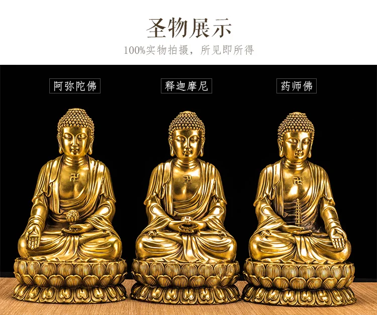 3P -TOP GOOD Sakyamuni Amitabha Amitayus Medicine Guru THREE Buddha figures HOME family Protection