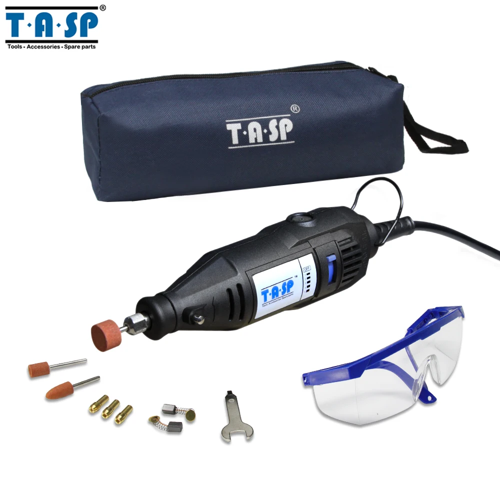 TASP 220V 130W Electric Mini Drill Grinder Rotary Engraver Tool Set with Safety Glasses and Accesso