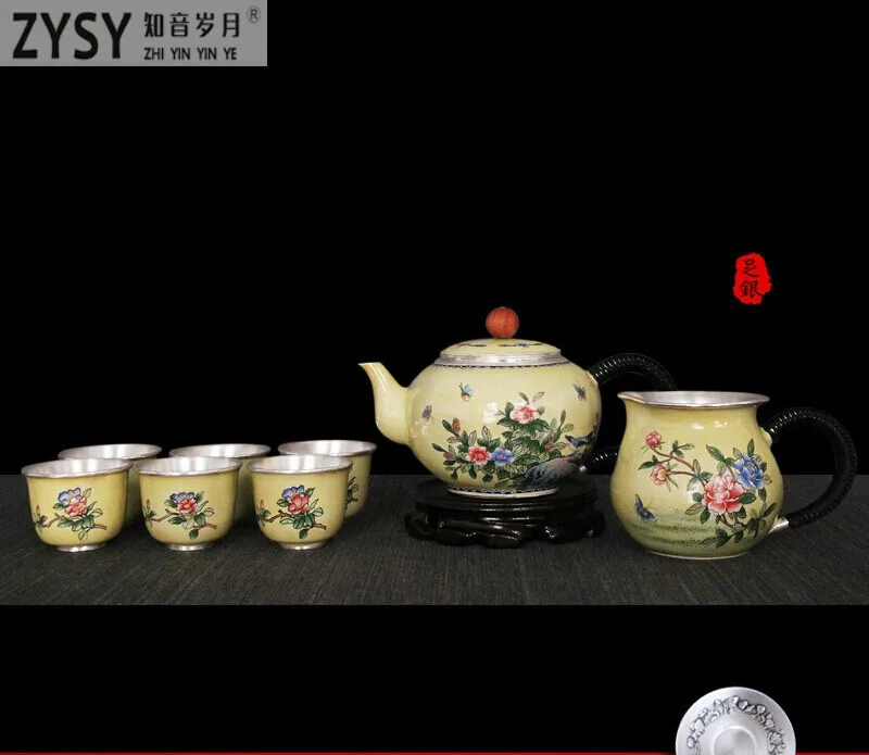 HOT SALE High grade 999Silver Products Cloisonne Hand made Tasting cup Kung Fu Teacup gift for family and fr