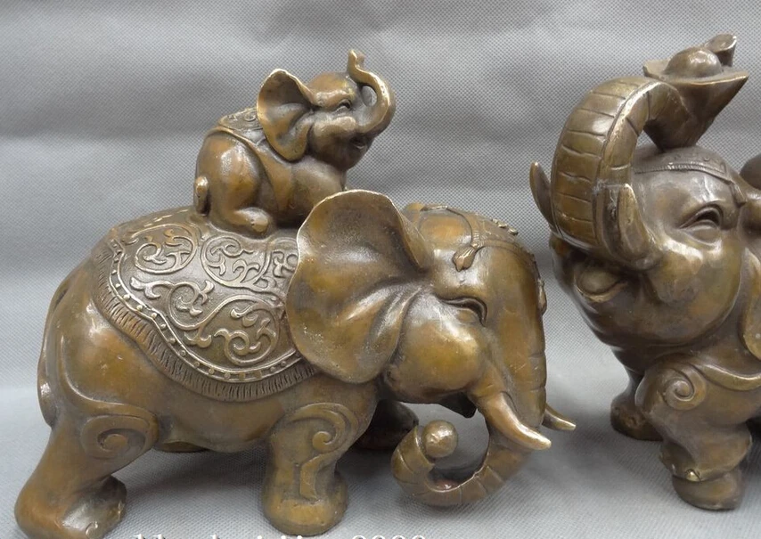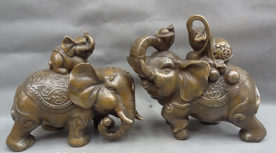 Hot Sale JP S0608 8" Chinese Bronze Copper Wealth YuanBao Fu Gourd Elephant Family Statue Pair (B0413)