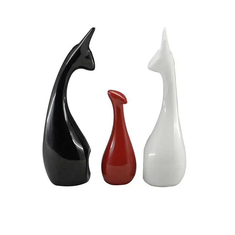 REVIEW TOP SELLER Three colour glazed ceramic porcelain statue figure one family deer father mother and baby