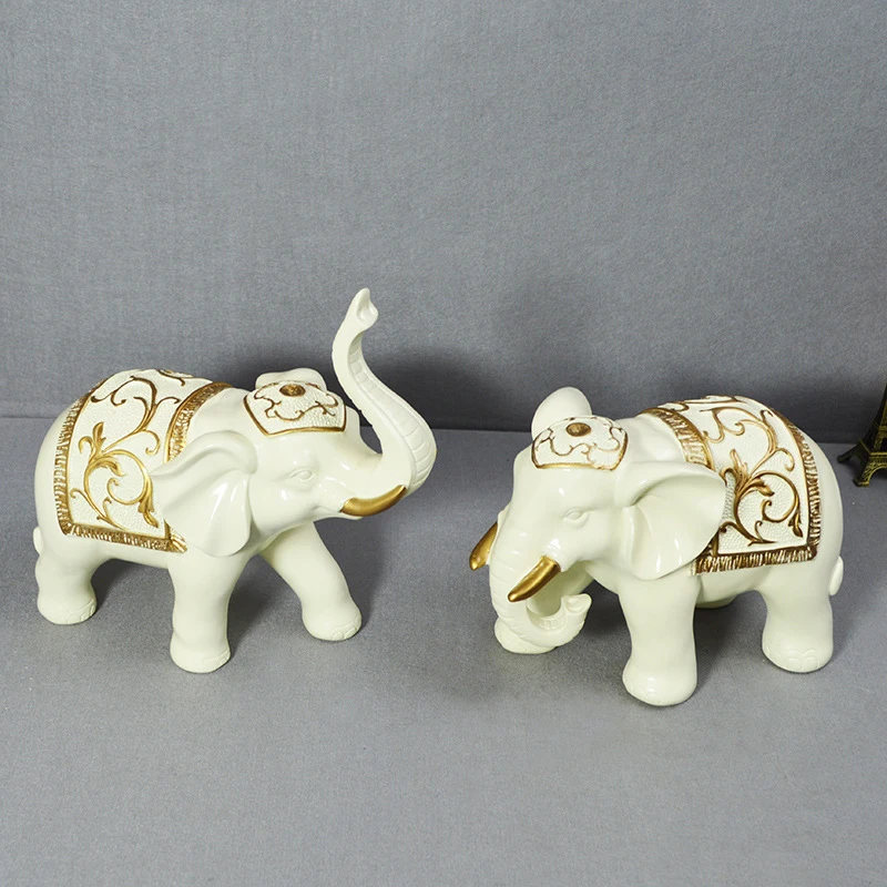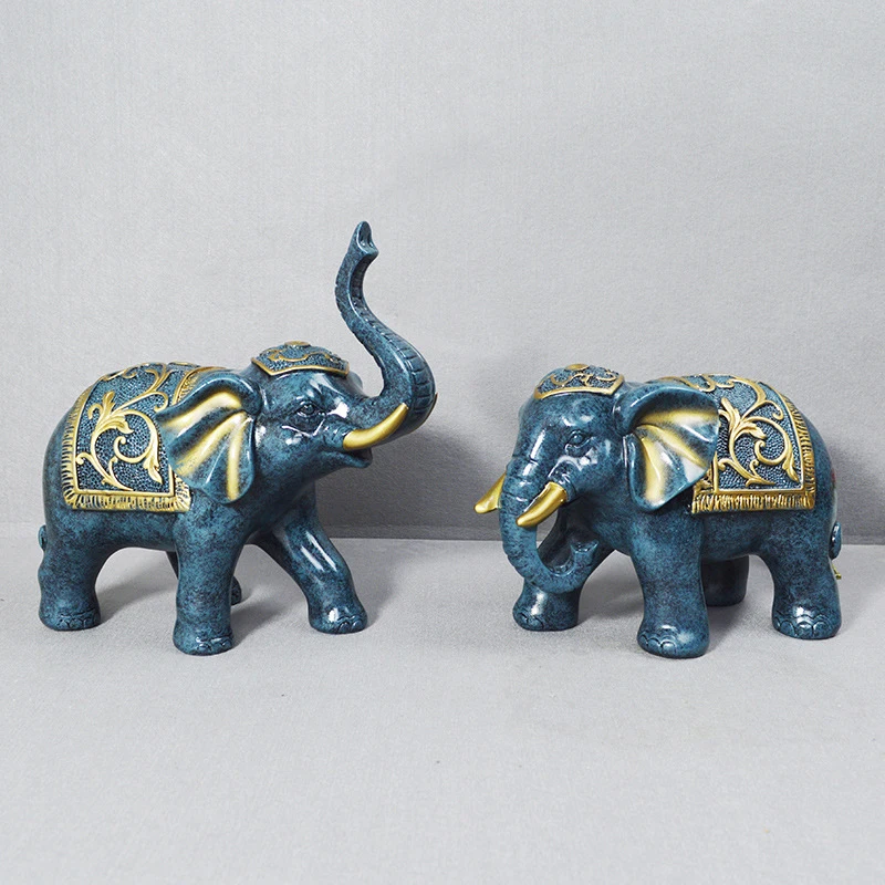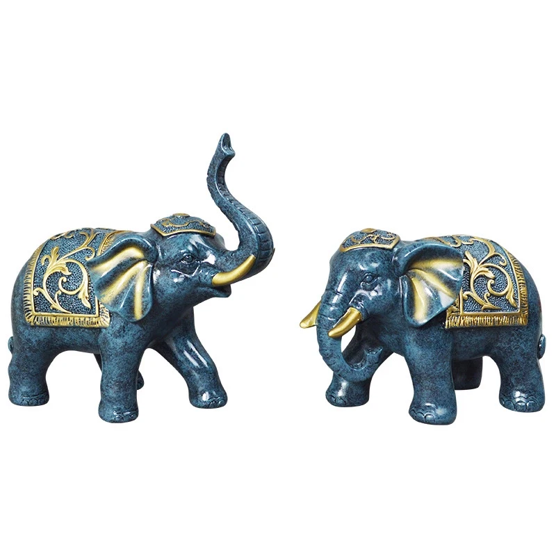 2pcs Nordic Stylish Couple Elephant Model Family Miniature Retro Design Resin Animal Elephant Statu