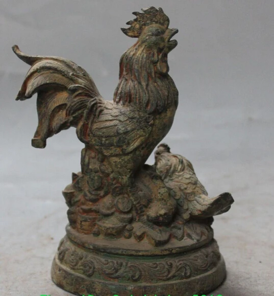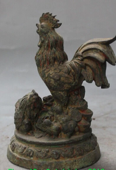 HIGH QUALITY 6" Chinese Bronze Gilt Wealth Money Gold Chicken Rooster Cock Family Statue R0707 B0403
