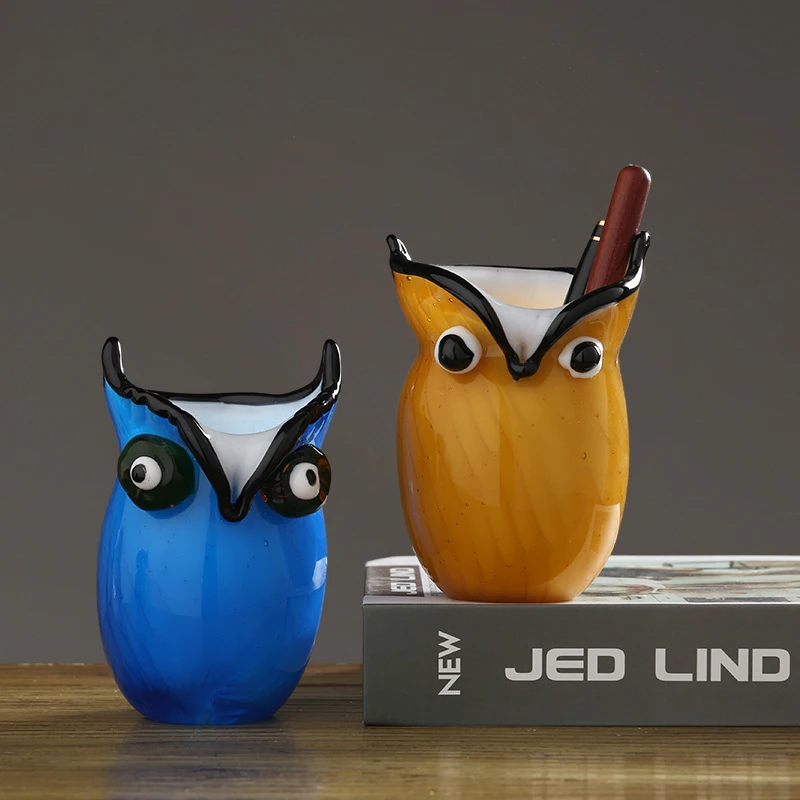 Best Crystal Glass Owl Crafts Coloured Glaze Marine Family Figurines Lovely Animal Miniatures Fish Tank