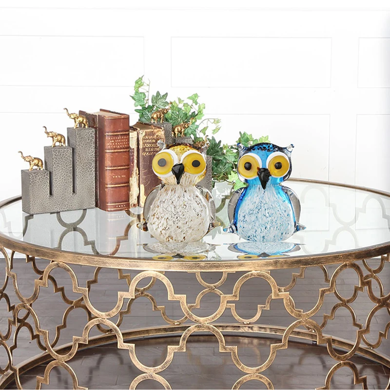 Crystal Glass Owl Crafts Coloured Glaze Marine Family Figurines Lovely Animal Miniatures Fish Tank