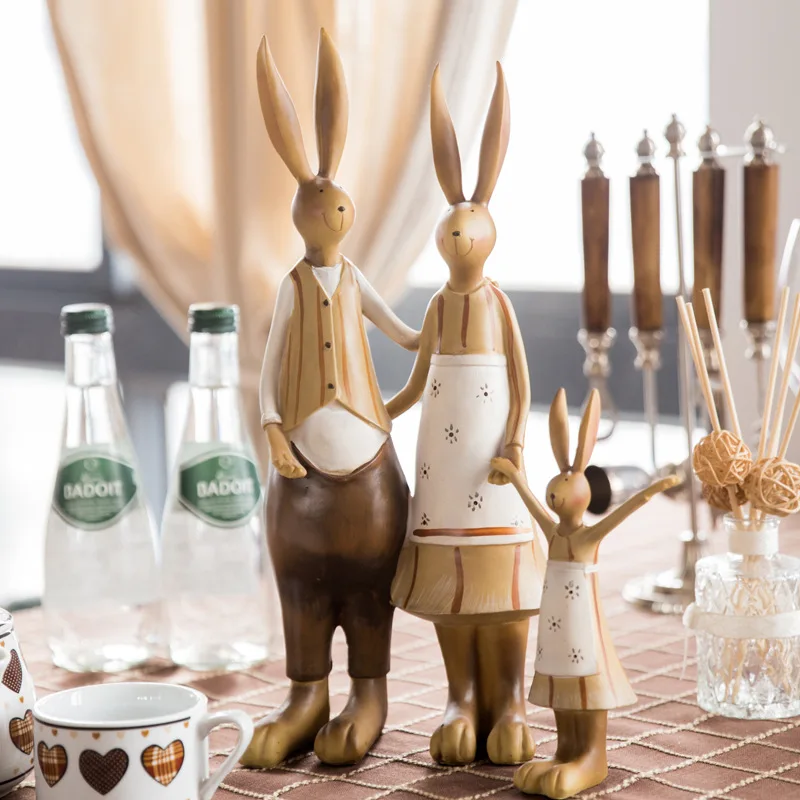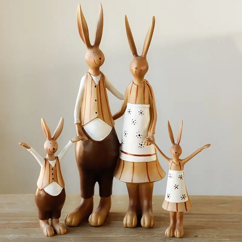 resin family rabbit figurines vintage statue rabbits wedding home decor crafts room decoration obje