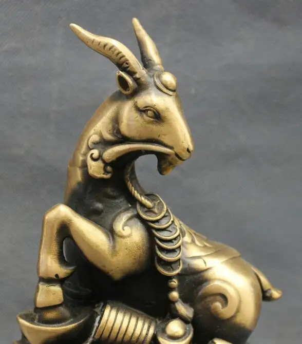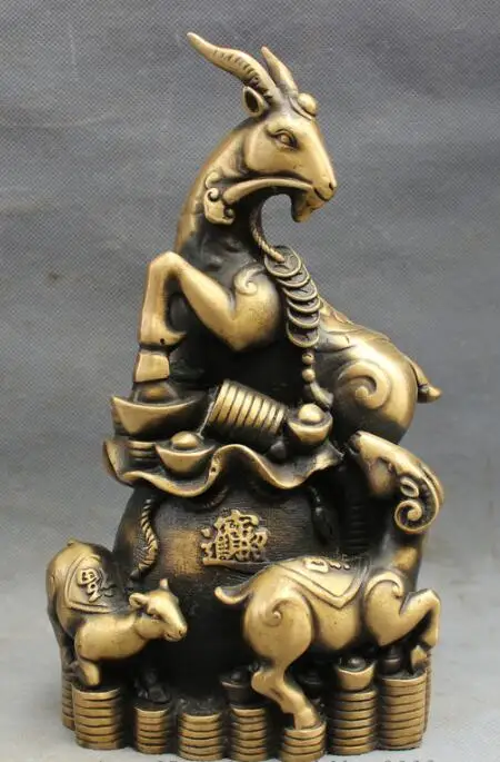 BEST SELLER S7326 10" Folk Chinese Bronze Rich Wealth Fu Sheep Goat Family On Treasure Statue D0318