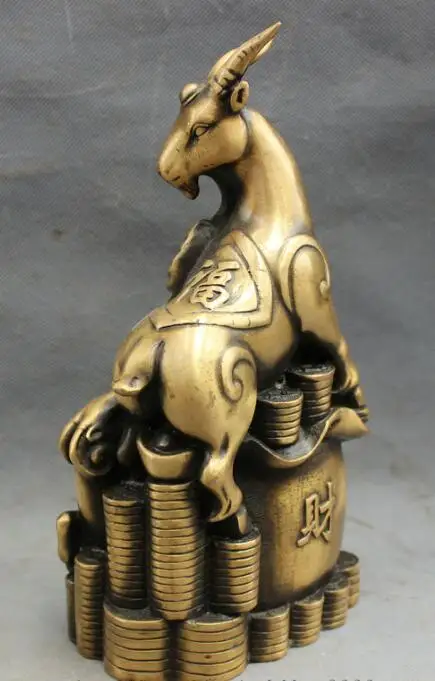S7326 10" Folk Chinese Bronze Rich Wealth Fu Sheep Goat Family On Treasure Statue D0318